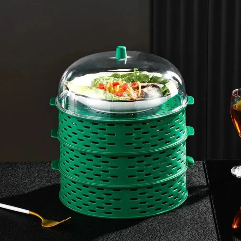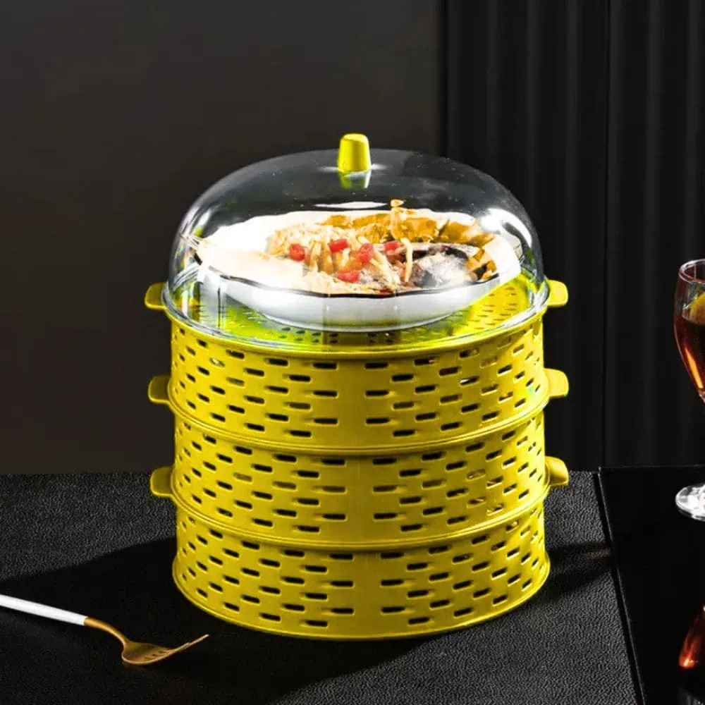 Upgrade your dining table setup with the 5-Layer Hollow Vegetable and Food Cover, a practical and stylish solution for protecting and organizing your meals. Crafted from high-quality, durable plastic, this cover features a hollow design that promotes proper ventilation, keeping your food fresh for longer. Its 5-layer structure offers ample storage space, allowing you to separate and organize fruits, vegetables, snacks, and more conveniently. The lightweight and stackable design saves space while maintaining hygiene and preventing contamination from dust, insects, or airborne particles. Ideal for indoor or outdoor dining, this multi-functional food cover is easy to clean, making it a must-have for every household.