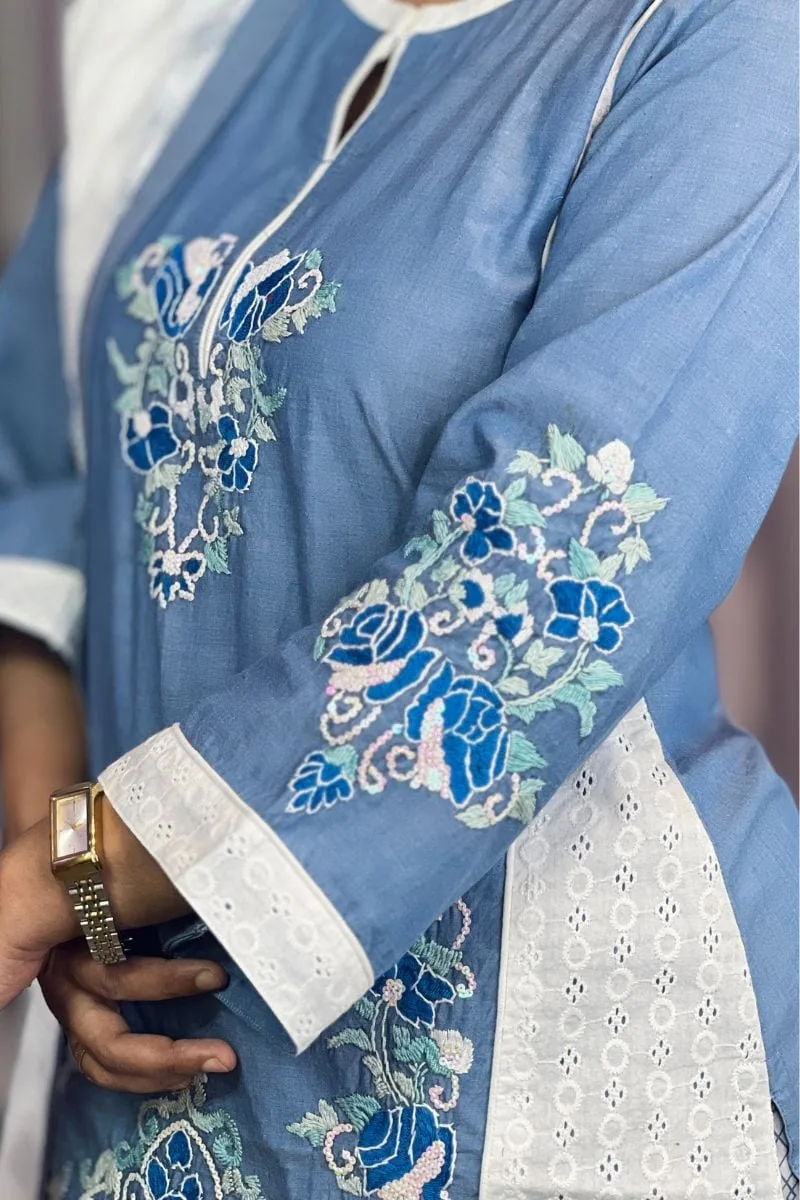 Allure Colour Chambray Denim Hand Embroidered Salwar Suit