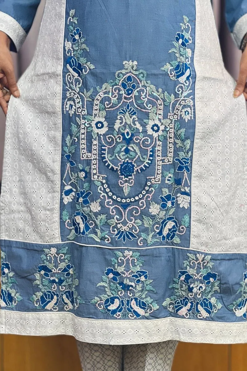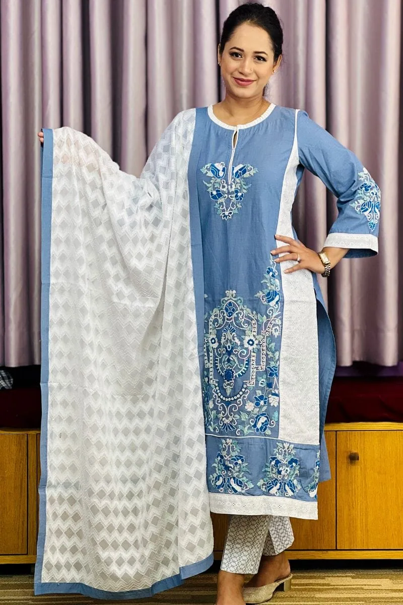 Allure Colour Chembray Denim Hand Embroidered Salwar Suit