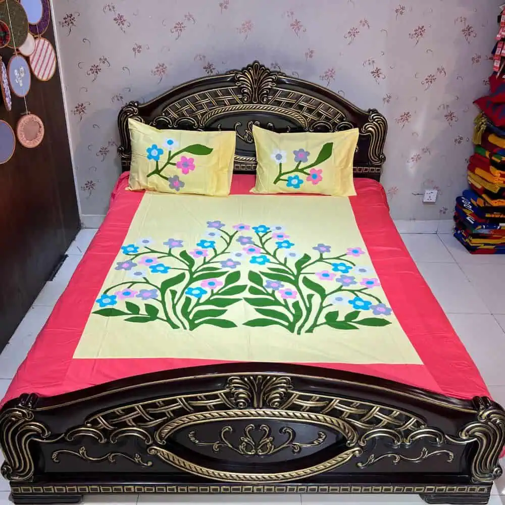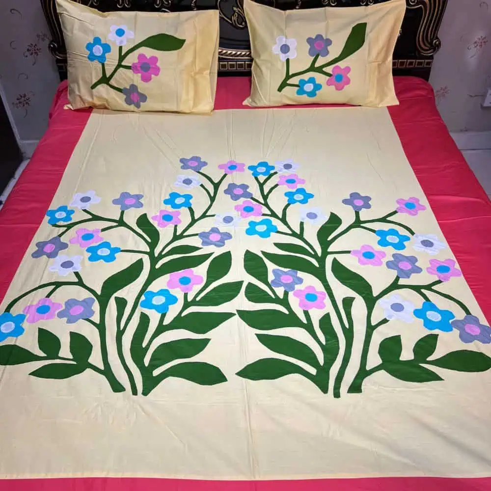 Elevate your bedroom with our soft cotton bed sheets featuring intricate applique designs. Perfect for adding a touch of personality to your space.