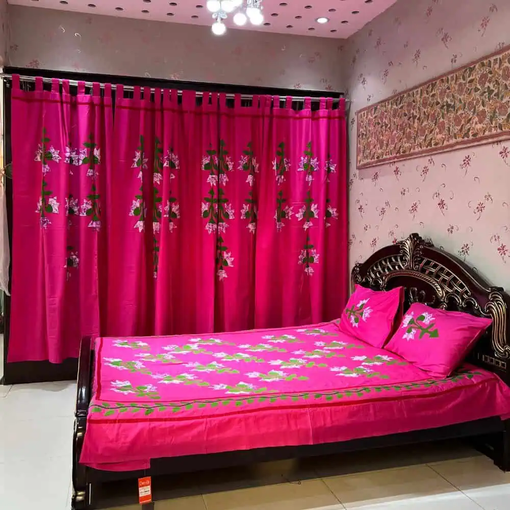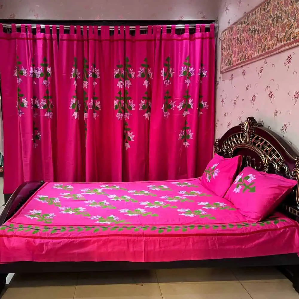 Elevate your bedroom with our soft cotton bed sheets featuring intricate applique designs. Perfect for adding a touch of personality to your space.