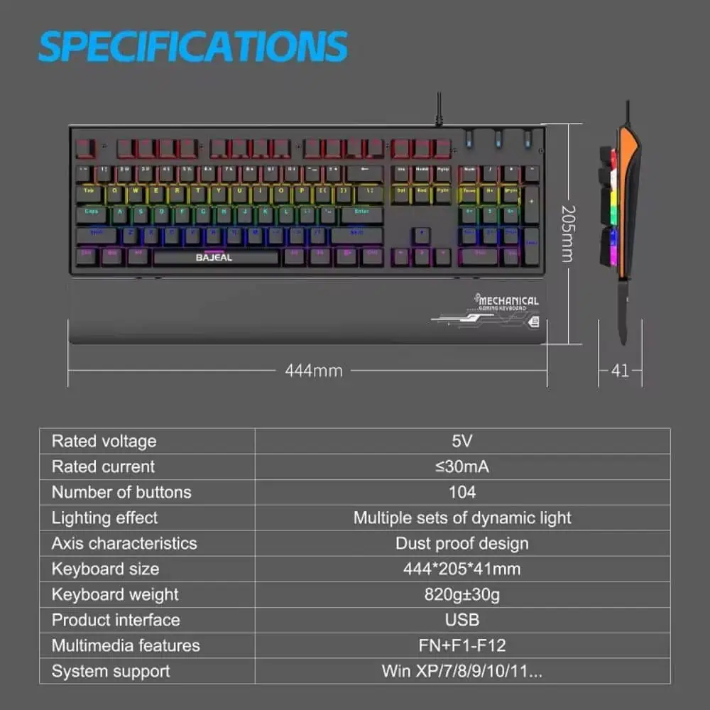 Experience the precision and responsiveness of the BAJEL K600 Mechanical Keyboard. Featuring durable mechanical switches, customizable RGB backlighting, and a sleek design, this keyboard is perfect for gamers and typing enthusiasts alike. Enjoy enhanced gaming performance, comfortable typing, and a personalized setup.