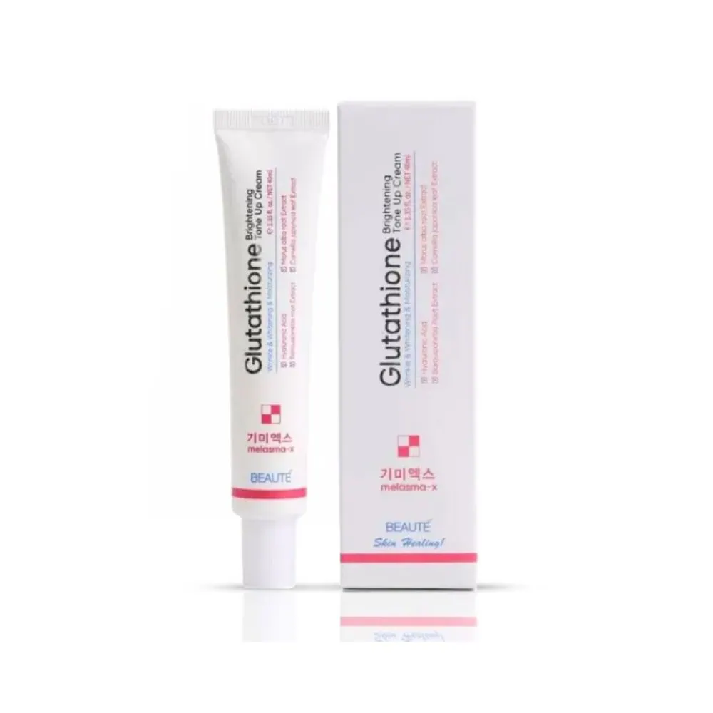 Beaute Glutathione Brightening Tone-Up Cream (45 ml) delivers an instant, radiant glow while aiding in fading dark spots and evening skin tone—packed with glutathione, niacinamide, arbutin, and hydrating actives.