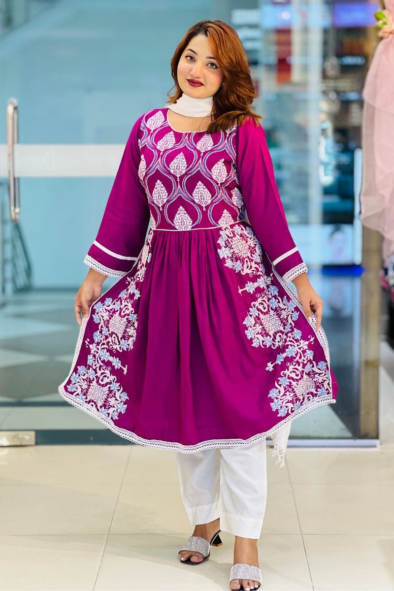 Embrace timeless style with a ready-to-wear Jacquard Shalwar Suit featuring a captivating screen print. This beautiful ensemble boasts a luxurious jacquard fabric with a woven design that adds depth and texture. The eye-catching screen print adds a touch of modern flair and allows for vibrant colors and intricate details. This pre-stitched shalwar kameez eliminates the need for tailoring, offering a convenient and stylish option for any occasion. Shop Jacquard Shalwar Suits with screen print today and experience effortless elegance!
