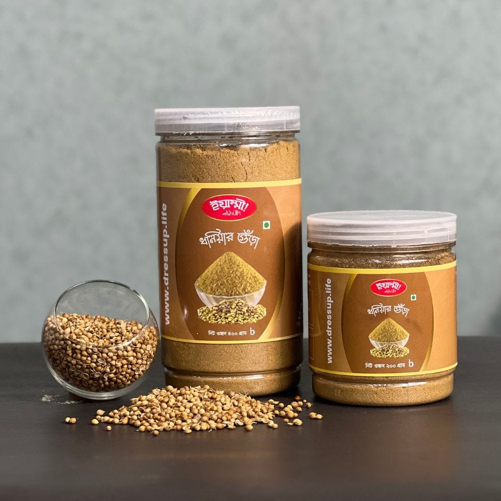 উৎকৃষ্ট মানের ধনিয়া থেকে উৎপাদন করা ইয়াম্মী ধনিয়া গুঁড়া (Yummy Coriander Powder)। অর্গানিক পদ্ধতিতে চাষ করা ধনিয়া গুঁড়ার গুণাগুণ থাকে সম্পূর্ণ অটুট। ইয়াম্মী ধনিয়া গুঁড়োর স্বাদ, রঙ, সুগন্ধ ও মানে বাজারে সেরা।