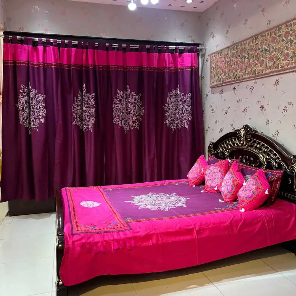 Indulge in the epitome of comfort and style with our exquisite Hand Worked Bed Sheet Set. Crafted from the finest cotton and featuring intricate embroidery, this set adds a touch of luxury to your bedroom.