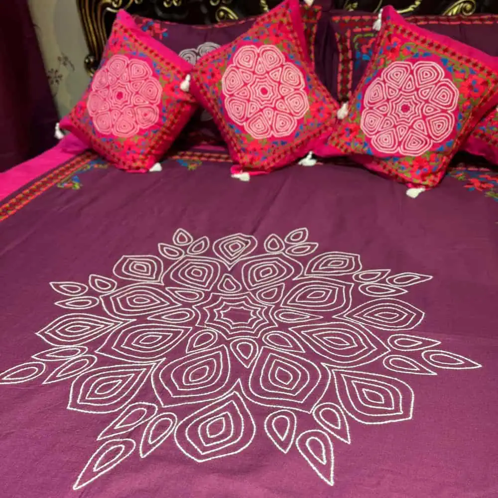 Experience the epitome of comfort and style with our Exclusive Hand Worked Bed Sheet Set. Crafted from the finest cotton and featuring intricate embroidery, this set includes everything you need to transform your bedroom.