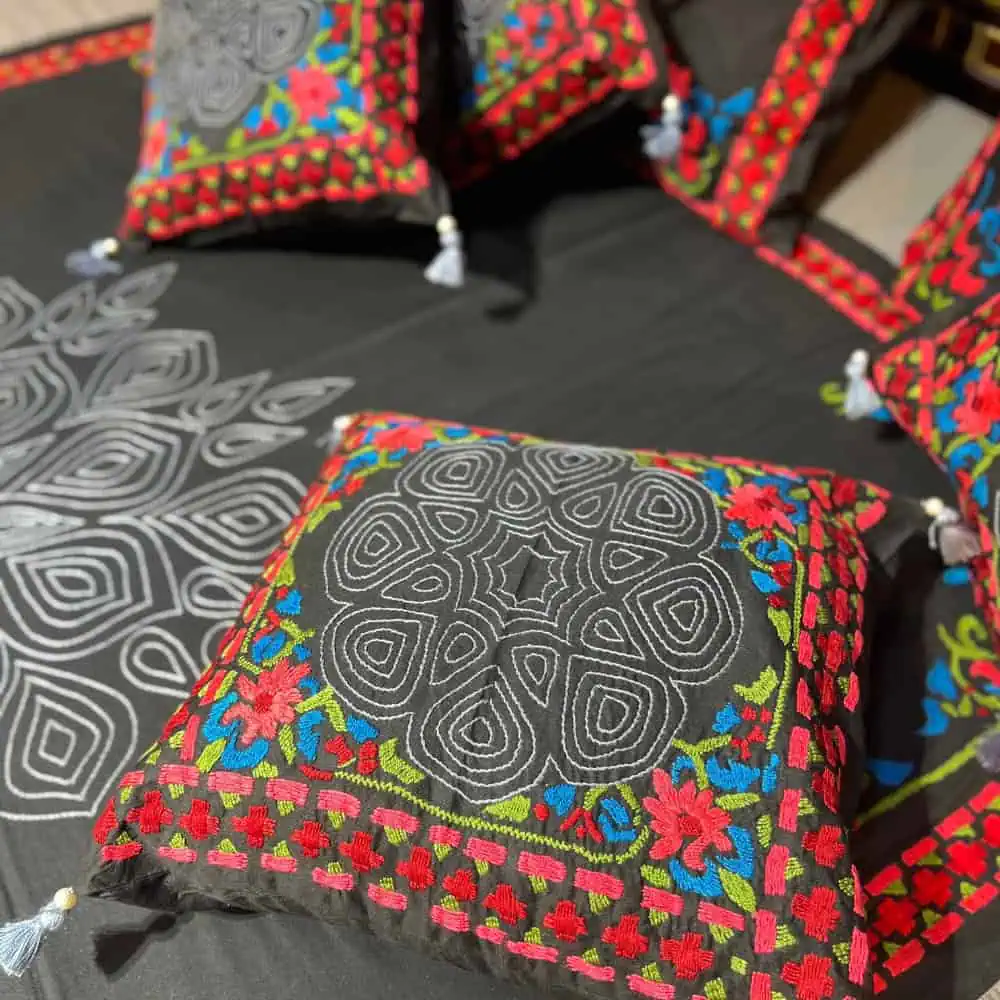 Experience the epitome of comfort and style with our Exclusive Hand Worked Bed Sheet Set. Crafted from the finest cotton and featuring intricate embroidery, this set includes everything you need to transform your bedroom.