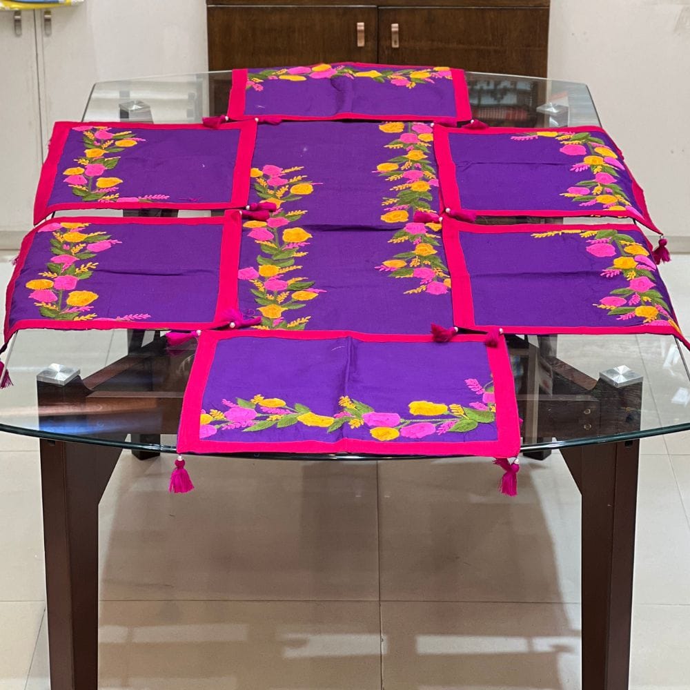 Enhance your dining decor with our Hand Embroidered Table Runner Set. Intricately crafted, it offers exquisite craftsmanship and sophistication, perfect for special occasions or everyday elegance.