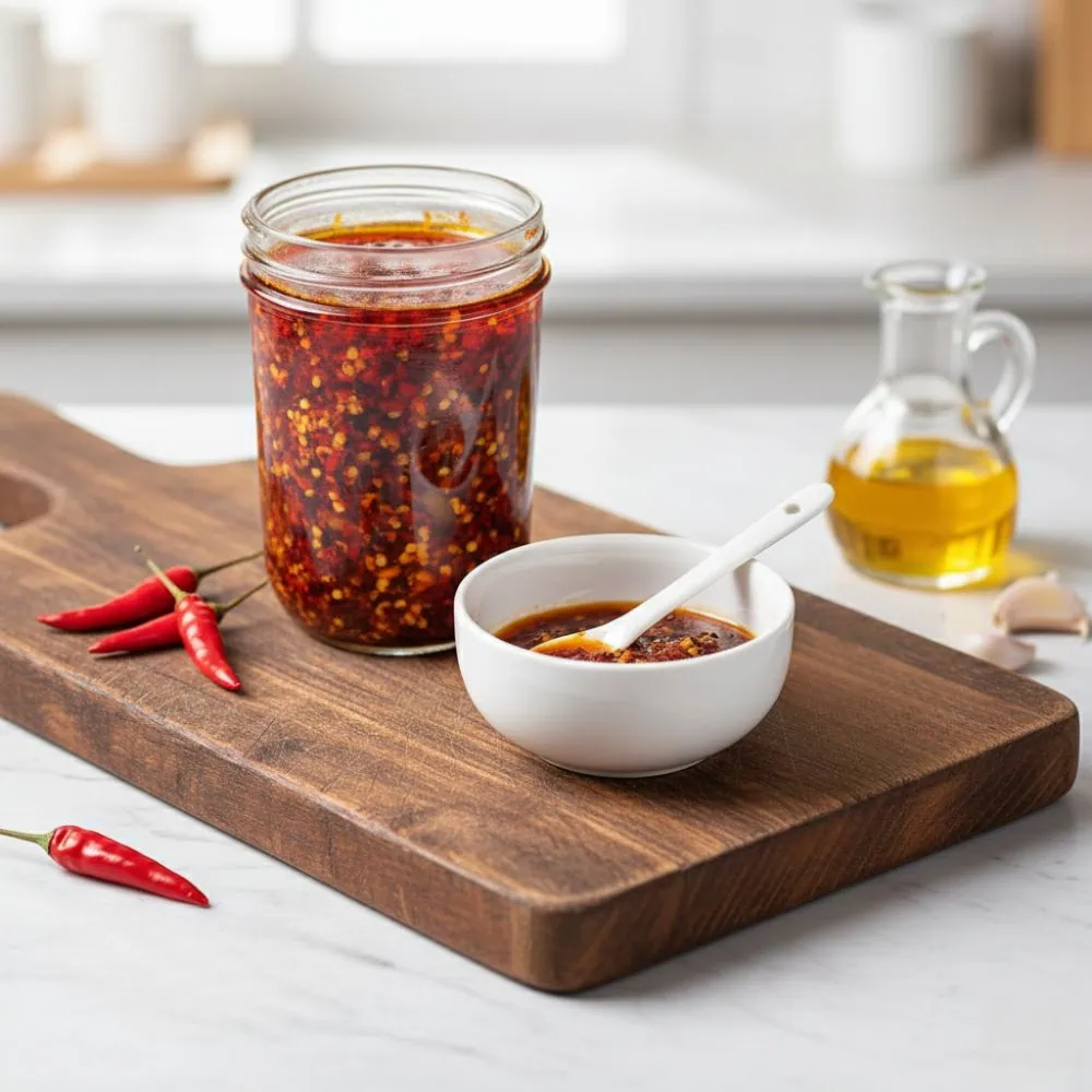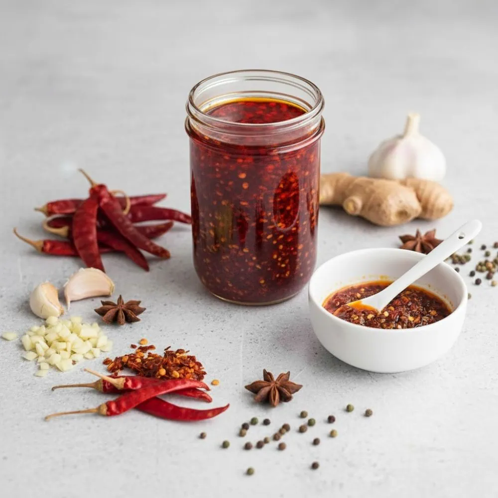 হোমমেড চিলি অয়েল আপনার খাবারে যোগ করবে ঝাল, মসলাদার এবং সুগন্ধি স্বাদ। বিশুদ্ধ লাল মরিচ, রসুন এবং সুগন্ধি মসলা দিয়ে তৈরি এই হাতের তৈরি চিলি অয়েল যে কোনও খাবারের স্বাদকে আরও সমৃদ্ধ করবে। এটি নুডলস, ডিম, গ্রিলড মাংস, ভাত এবং সস এর সাথে ব্যবহার করা যায়।