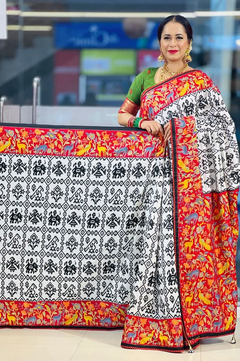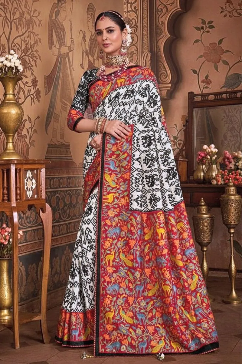 Embrace elegance with this Ikkat Patola Silk Saree, crafted with luxurious silk and intricate handwoven patterns that reflect timeless Indian artistry.