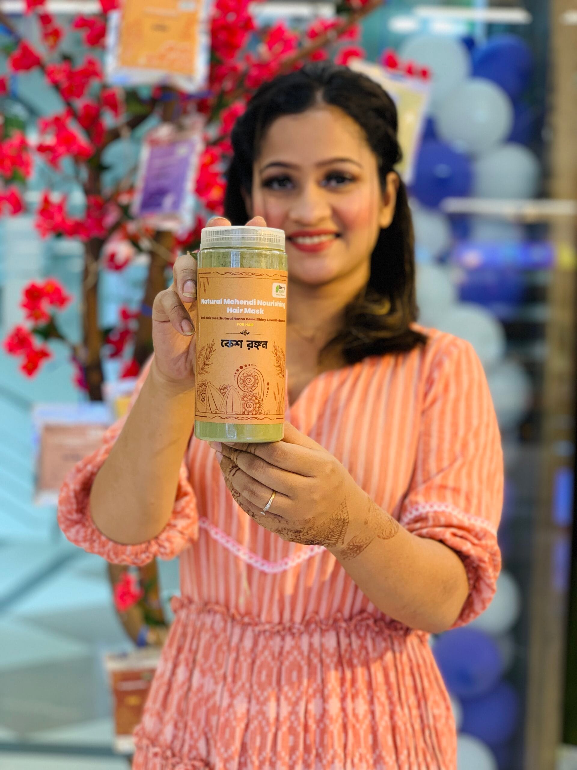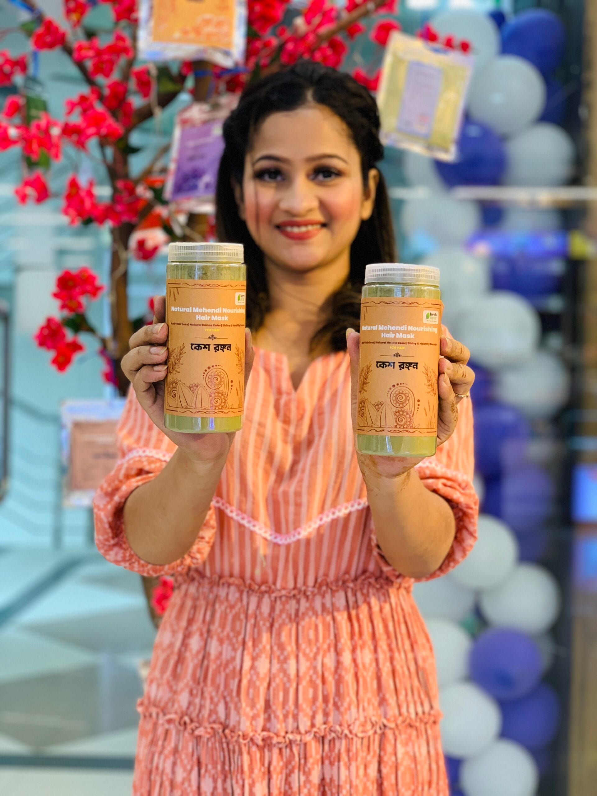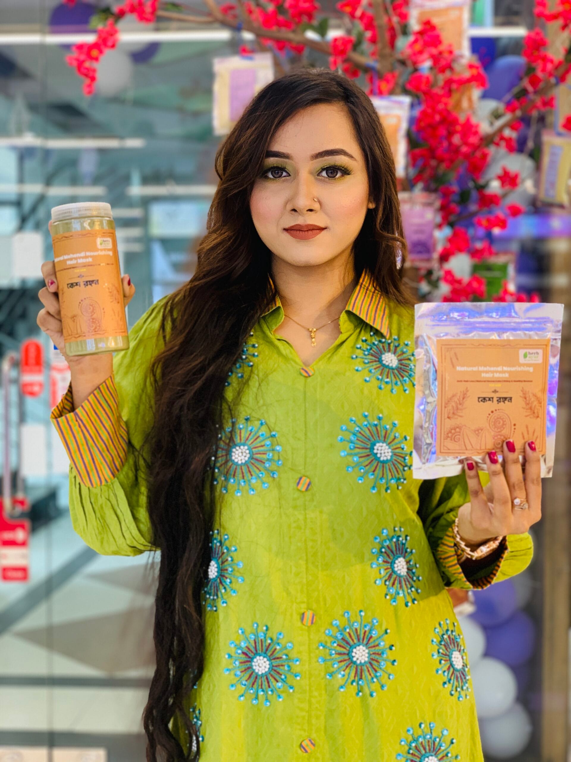 প্রাকৃতিক মেহেদি প্যাক যার সাথে আরো উপাদান সঠিক মিশ্রনে আছে।এটি চুলের গোঁড়া শক্ত করে চুল পড়া কমাবে, খুশকি প্রতিরােধ করবে, শুষ্ক এবং নিষ্প্রাণ চুলকে প্রাণবন্ত, কোমল করে তুলবে।পাঁকা চুলে মেহেদির রং দিবে, কালো চুলে ঝলমলে ভাব আনবে।
