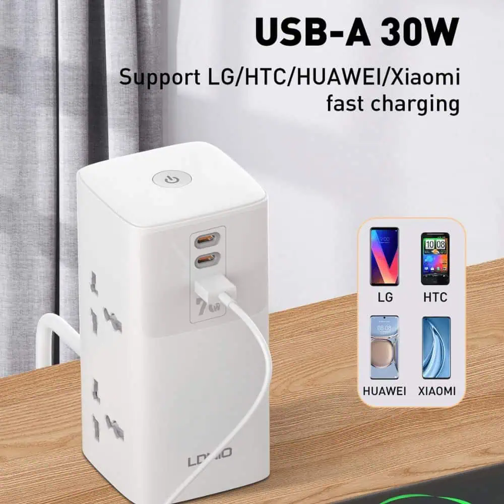 Charge multiple devices simultaneously with the LDNIO SC4383 70W Multifunctional Universal Desktop Power Adapter. This versatile power adapter features multiple USB ports and AC outlets, making it perfect for home, office, or travel. Enjoy fast charging speeds and surge protection for added safety.