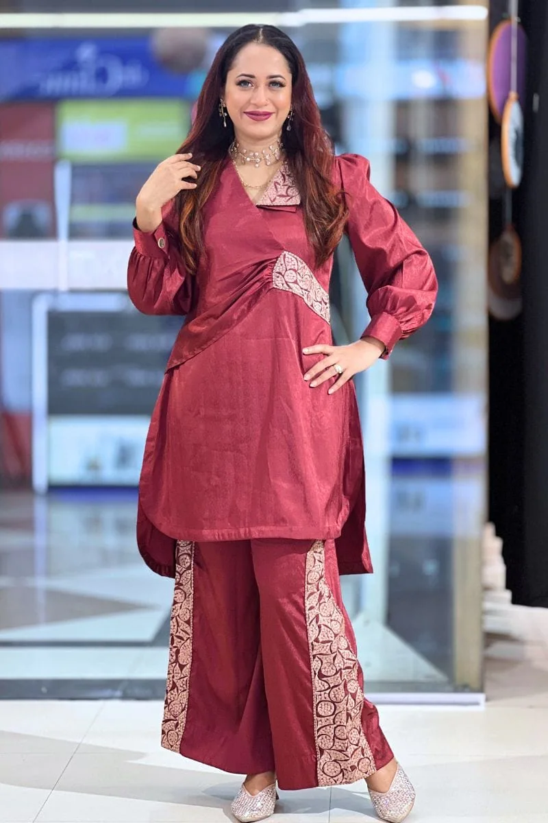 Maroon Arabian Silk Machine Embroidered Co-Ords