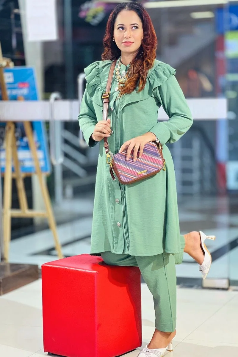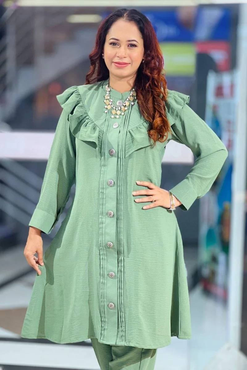 Redefine sophistication with this Olive Colour CY Micro Georgette Co-Ords, crafted from high-quality micro georgette for a lightweight, breathable, and flowy feel. The elegant olive tone brings out a refined charm, while the contemporary co-ord design ensures a perfect balance of comfort and trend. Ideal for parties, brunches, or casual outings, this outfit flatters all body types with its smooth drape and graceful movement. Pair it with statement accessories and heels for a polished, fashion-forward ensemble that blends simplicity with luxury.