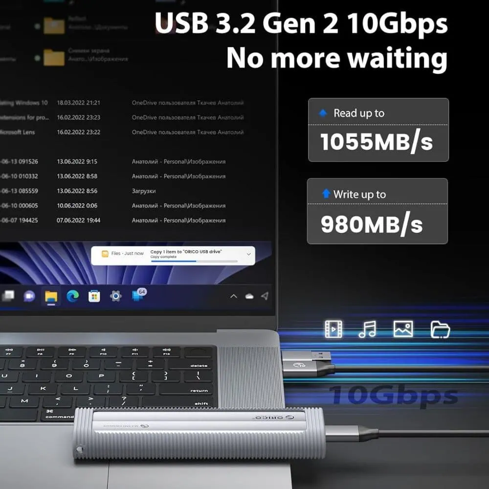 The ORICO M2PV-C3 M.2 Type-C NVMe SSD Enclosure is a sleek and portable solution for upgrading your storage capacity. This high-quality enclosure is designed to accommodate M.2 NVMe SSDs, allowing you to easily add additional storage to your laptop, computer, or other devices.