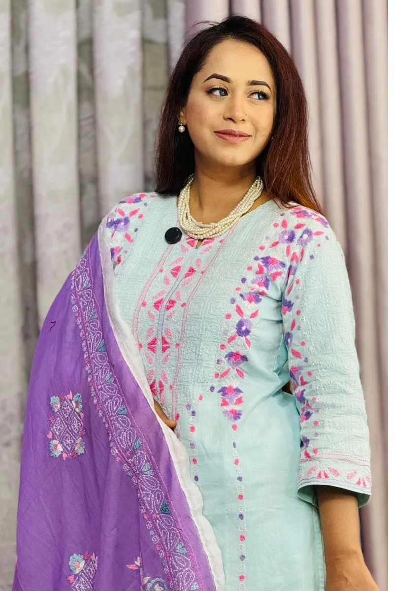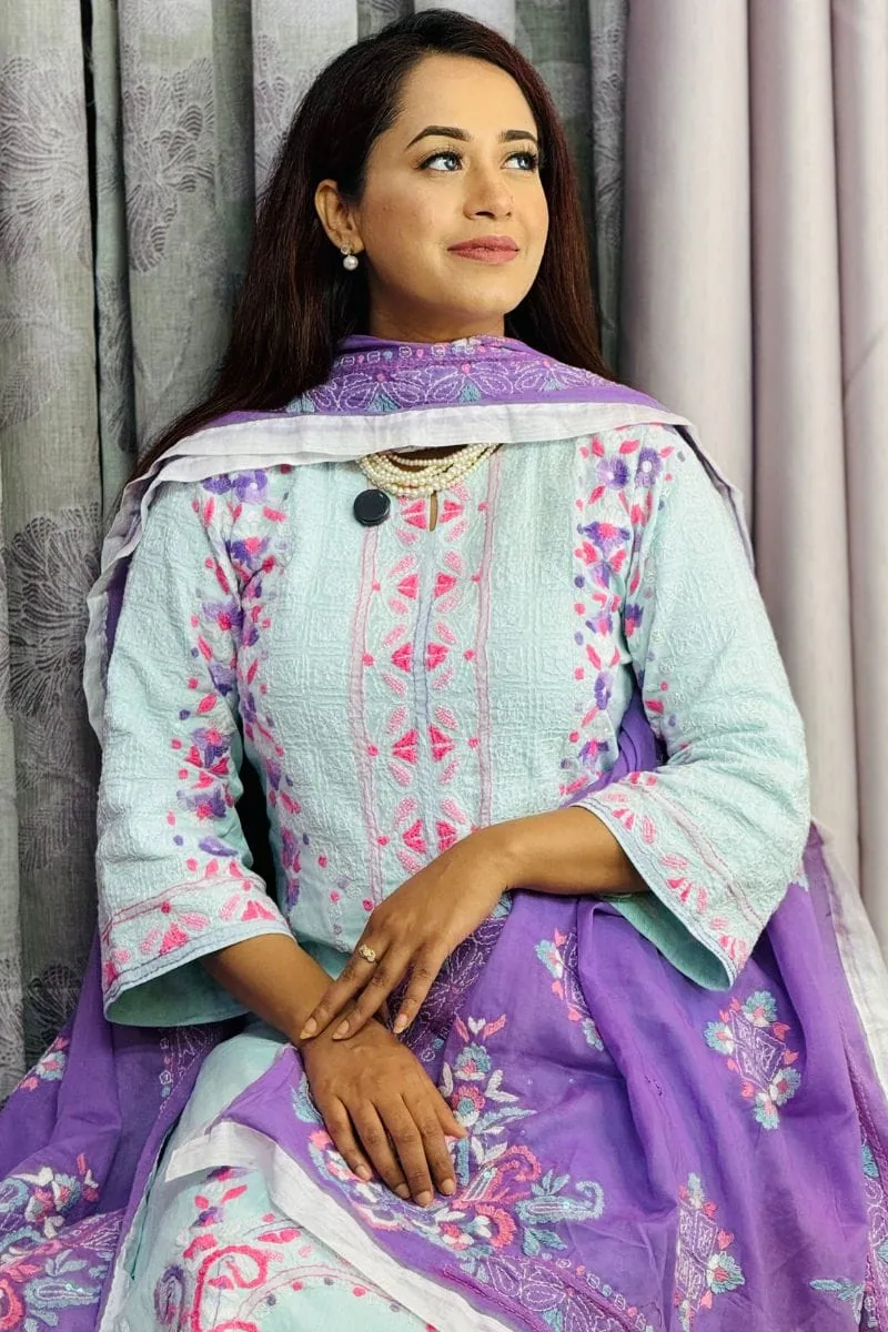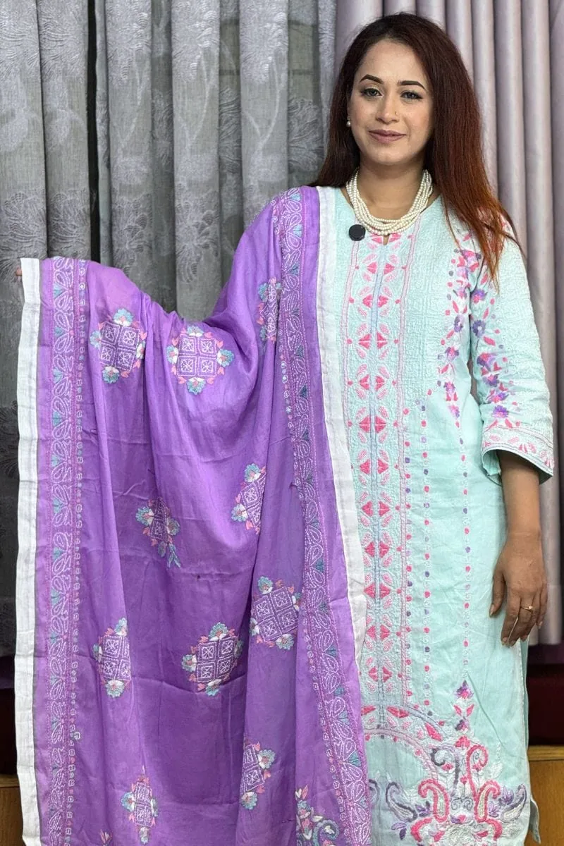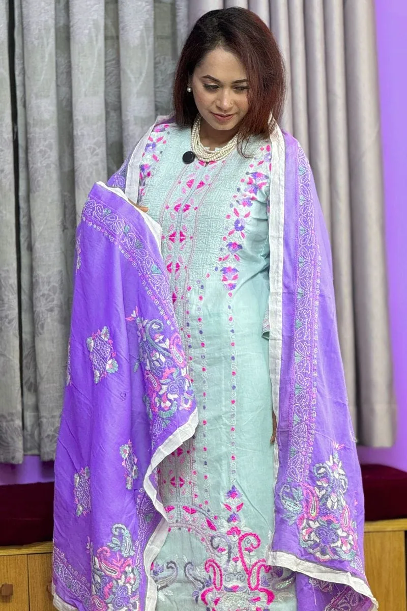 Pest & Purple Color Hand Embroidered Shalwar Suit