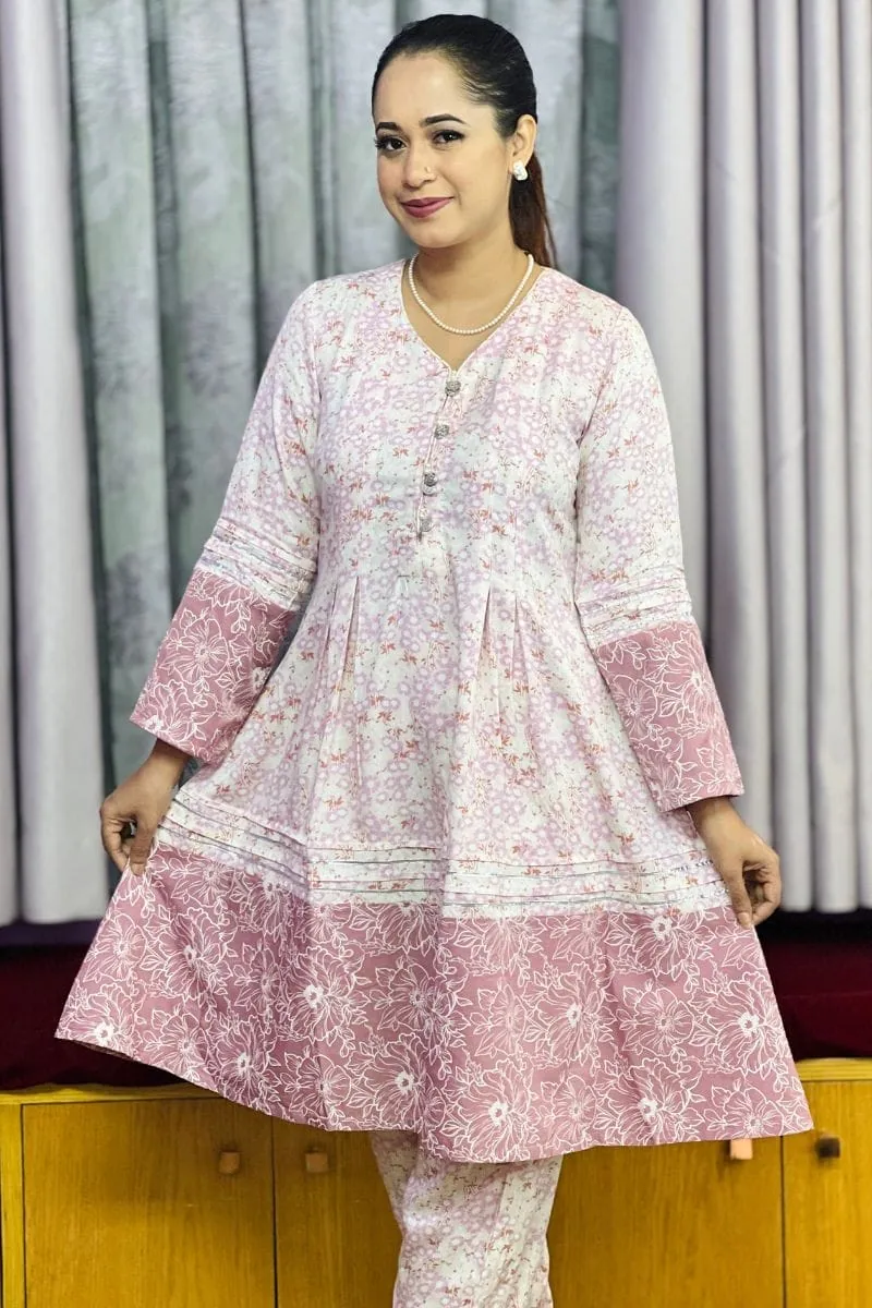Pink Screen Printed Viscose Co-Ords