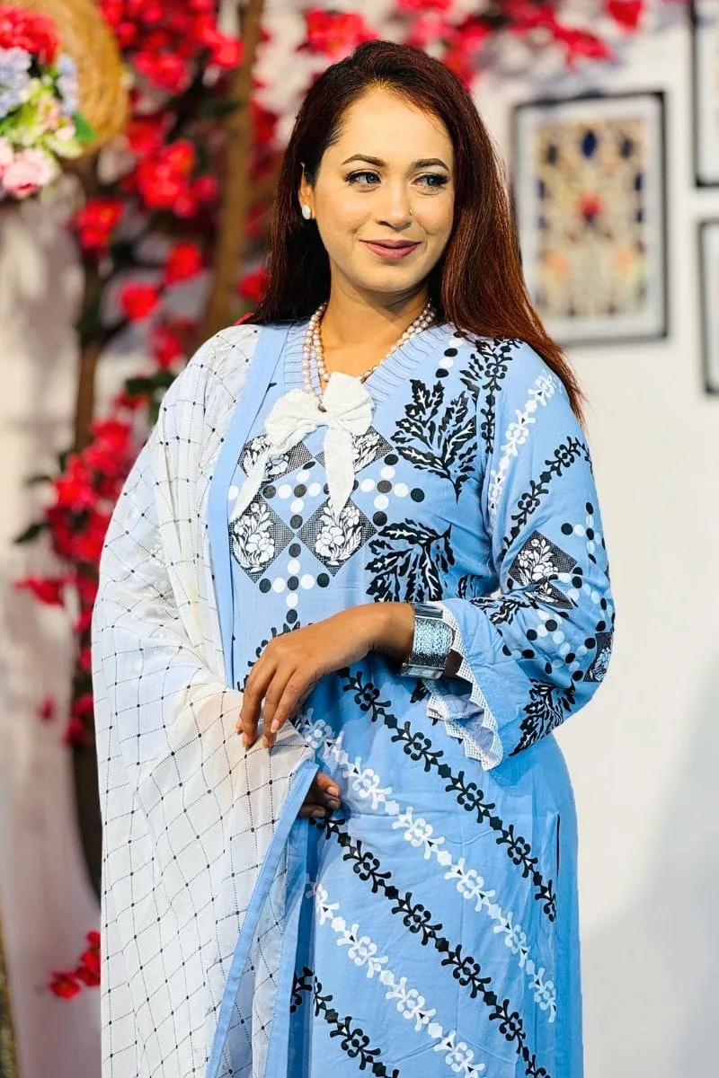 Powder Blue Viscose Screen Printed Shalwar Suit