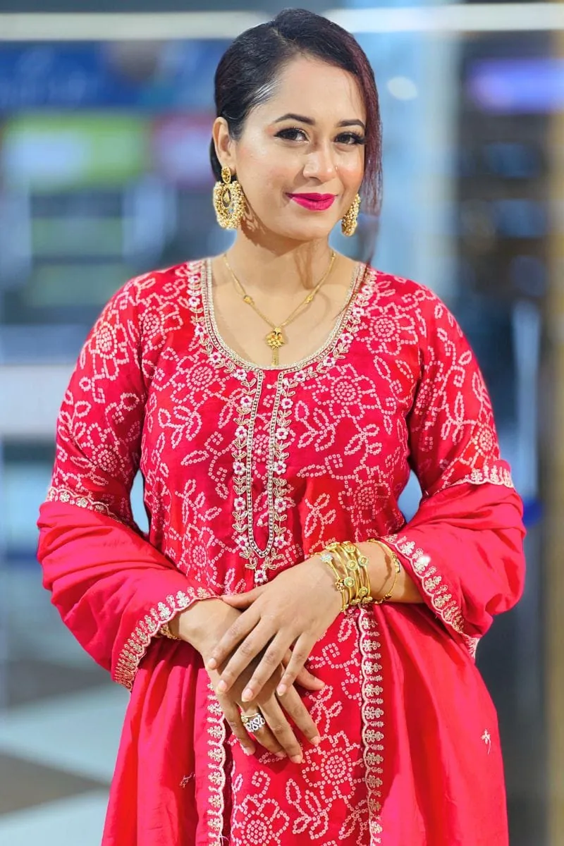 Shine with elegance in this Red Color Silk Stone Worked Salwar Suit, featuring luxurious silk fabric and exquisite stone embellishments for a stunning festive look.