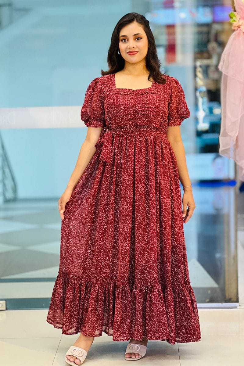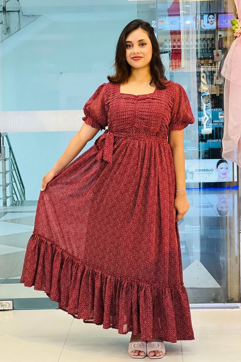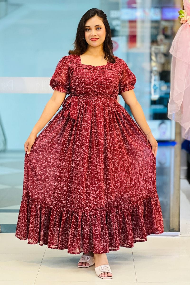 Make a statement with our Russet Brown Color Georgette Fabric Gown, a perfect blend of elegance and charm. Crafted from premium georgette fabric, this gown exudes sophistication. Whether for formal events or special occasions, it promises to elevate your style with its timeless design and superior quality.