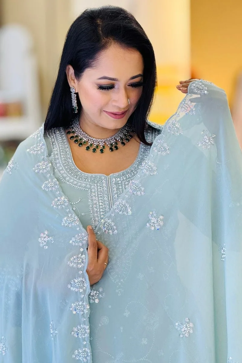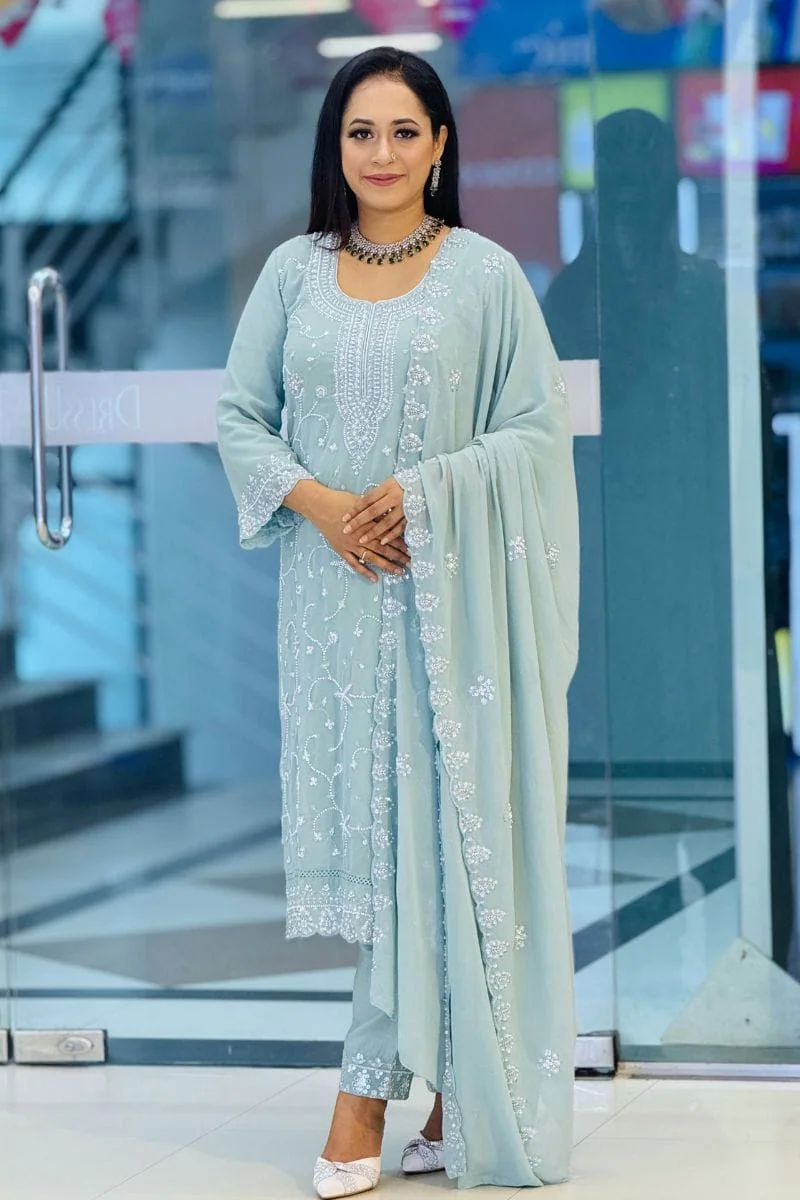 Unveil the beauty of tradition with a modern twist in the Sana Noor Georgette Embroidered Catalogue. This exquisite collection showcases a stunning variety of embroidered georgette suits and ensembles, designed to enhance your festive and formal wardrobe. Made from premium quality georgette, each piece offers a lightweight, flowy texture with a luxurious feel, ensuring both comfort and style.