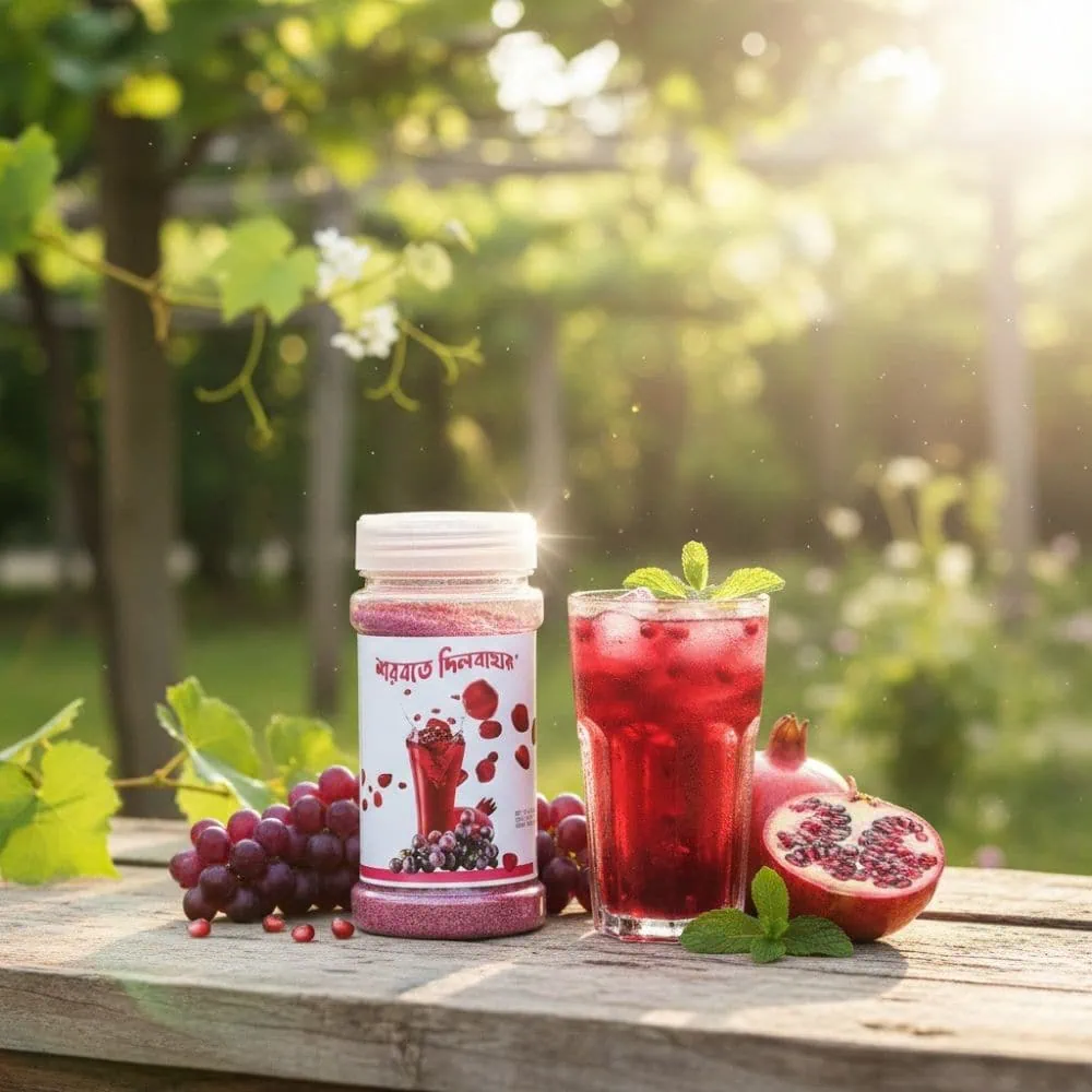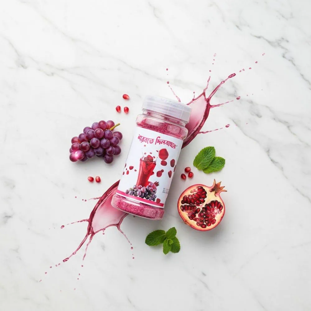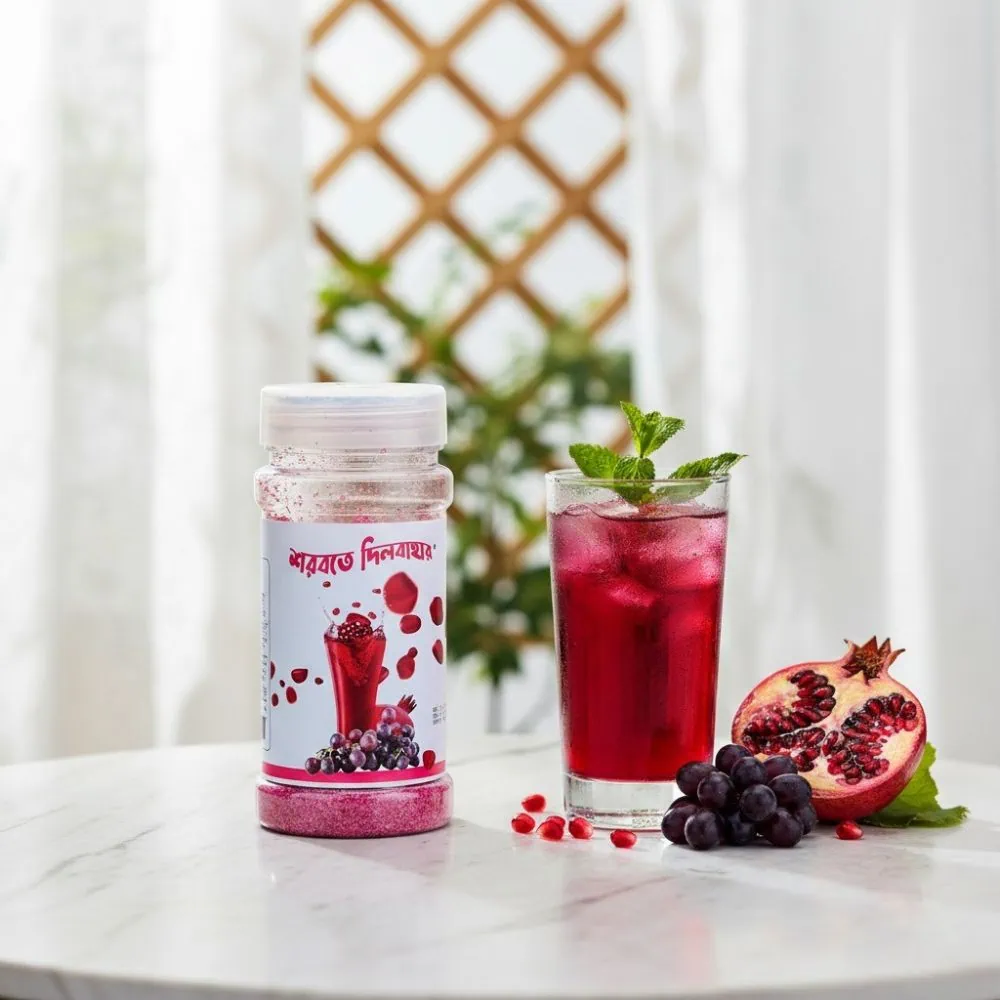 গোলাপের নির্যাস, বেদানার নির্যাস, লাল আঙুরের নির্যাস, ভিটামিন সি, চিনি, সৈন্ধব লবণ, সাইট্রিক অ্যাসিড, ফুড কালার, কোল্ড ট্রিক।