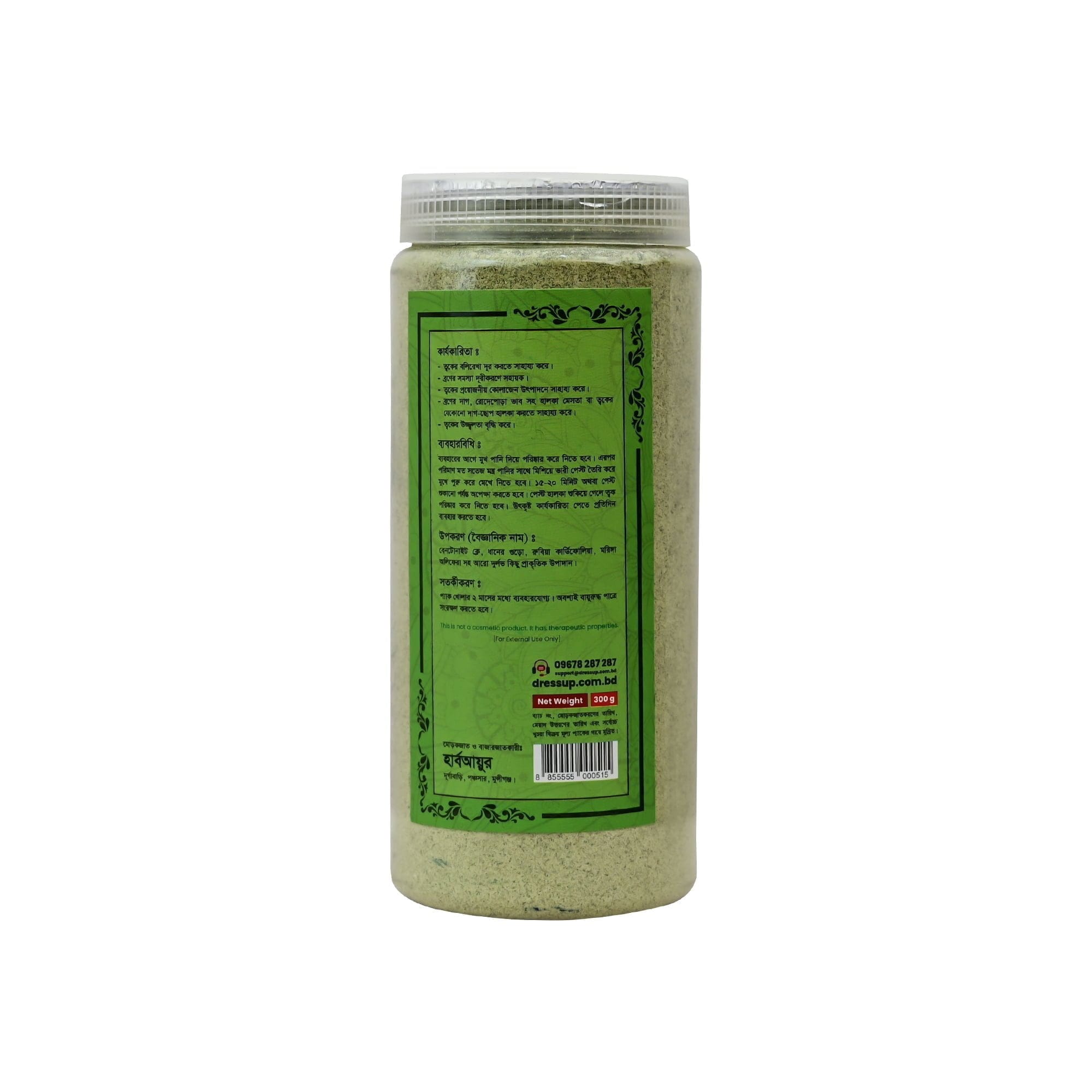 উপকরণ (বৈজ্ঞানিক নাম): বেনটোনাইট ক্লে, ধানের গুড়াে রুবিয়া কার্ডিফোলিয়া , মরিঙ্গা অলিফেরা আরাে কিছু দুর্লভ প্রাকৃতিক উপাদান।