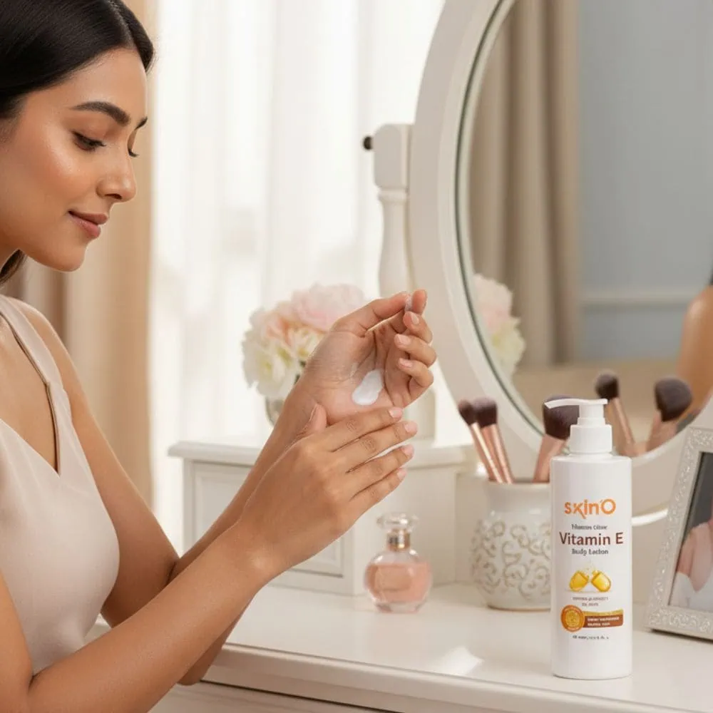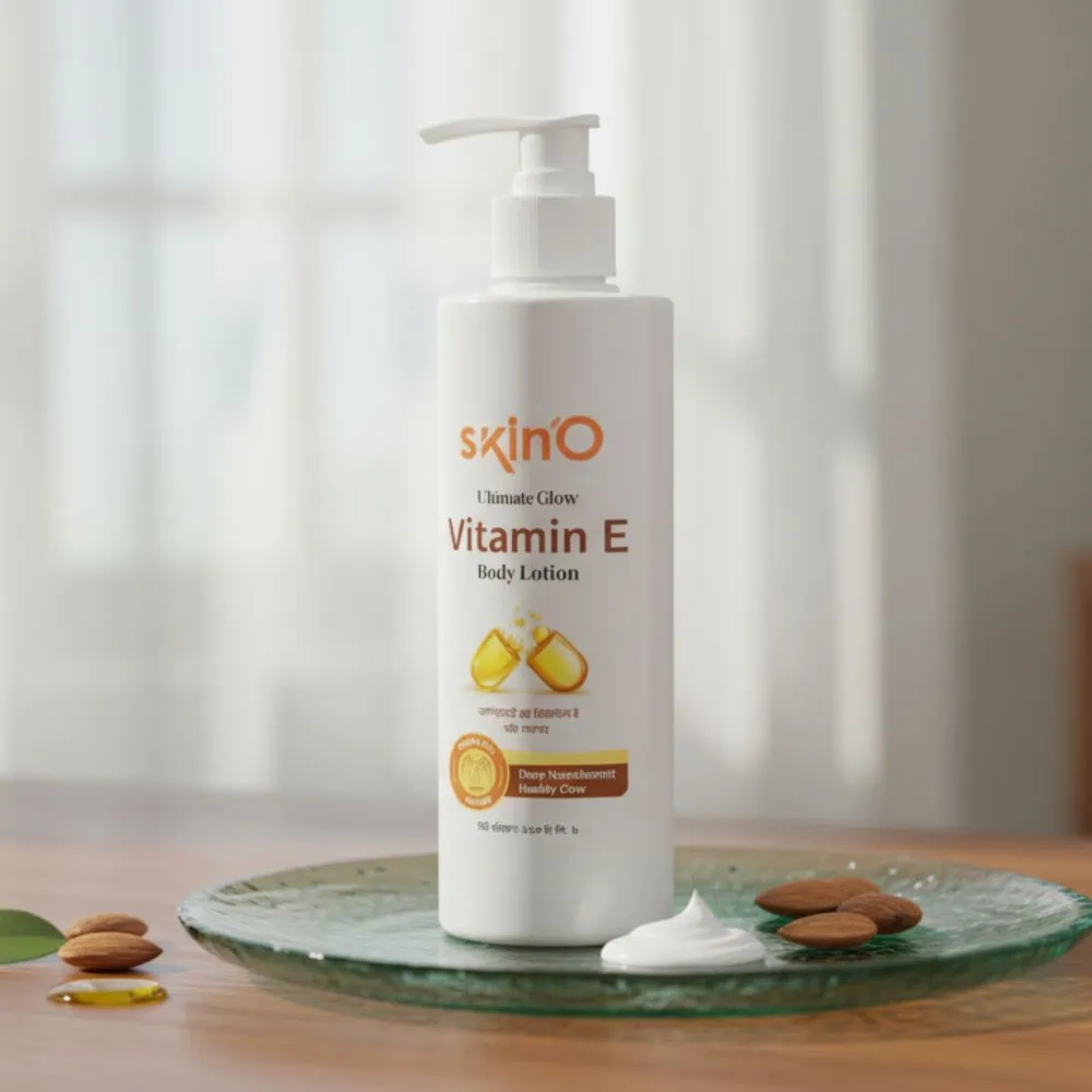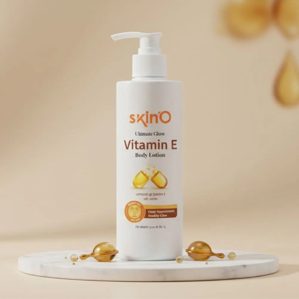 Skin’O Ultimate Glow Vitamin E Body Lotion is crafted to deliver deep hydration while improving your skin’s natural radiance. Infused with **Vitamin E**, a potent antioxidant, the formula helps repair and strengthen the skin barrier. **Niacinamide** further supports skin health by improving texture and tone. Despite its rich hydration, the lotion has a lightweight, fast-absorbing texture, making it ideal for daily use.