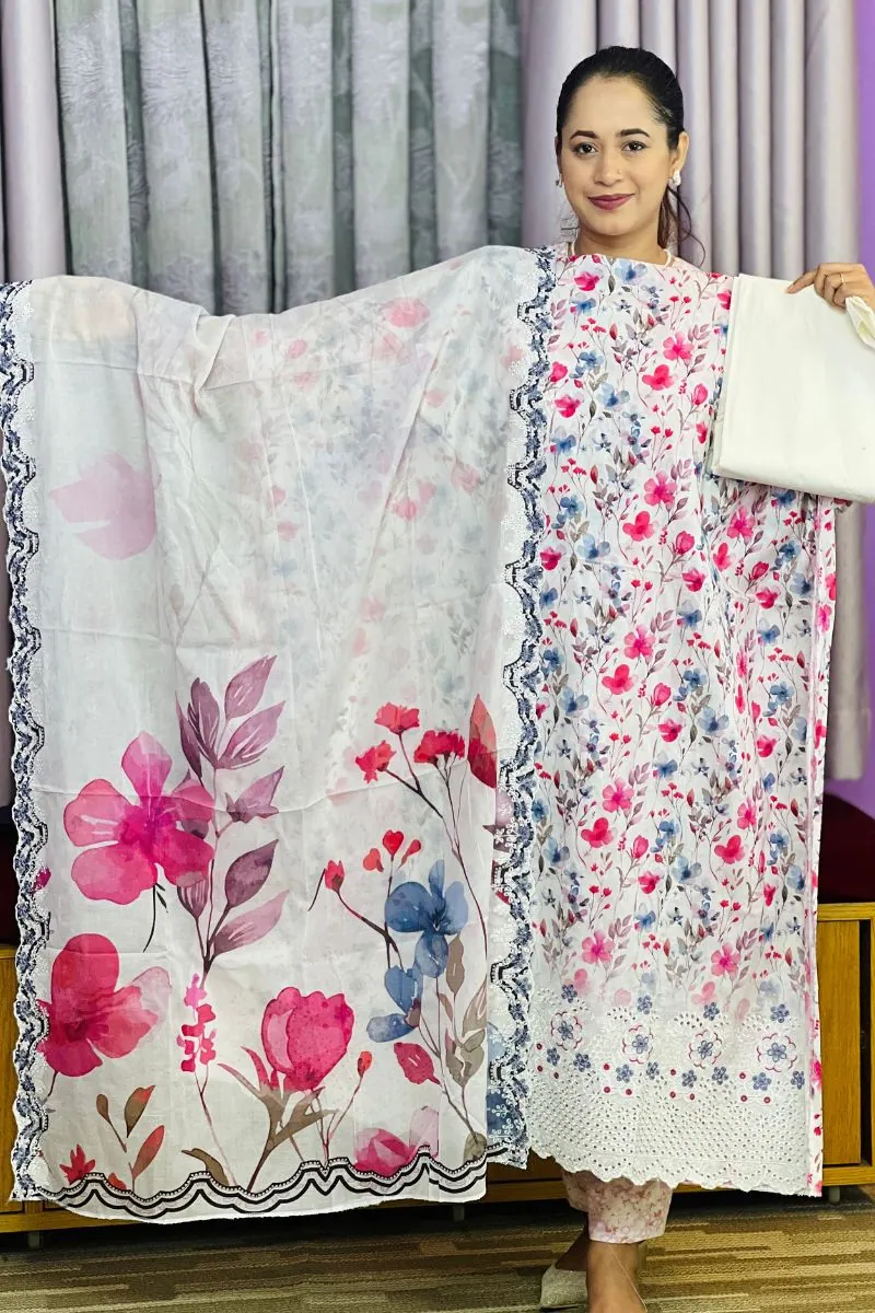 Enhance your ethnic elegance with this Spring Cotton Machine Embroidered Salwar Suit – 3, featuring soft cotton fabric and detailed embroidery that perfectly blends comfort and sophistication.