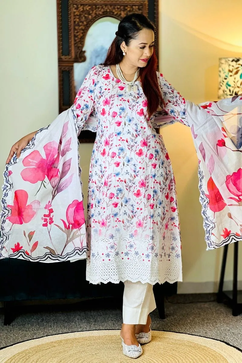 Embrace the beauty of spring with our Spring Cotton Machine Embroidered Stitched Shalwar Suit, crafted to offer unmatched comfort and effortless style. Made from premium-quality cotton, this outfit ensures breathability and all-day ease, making it ideal for warm weather and everyday wear.