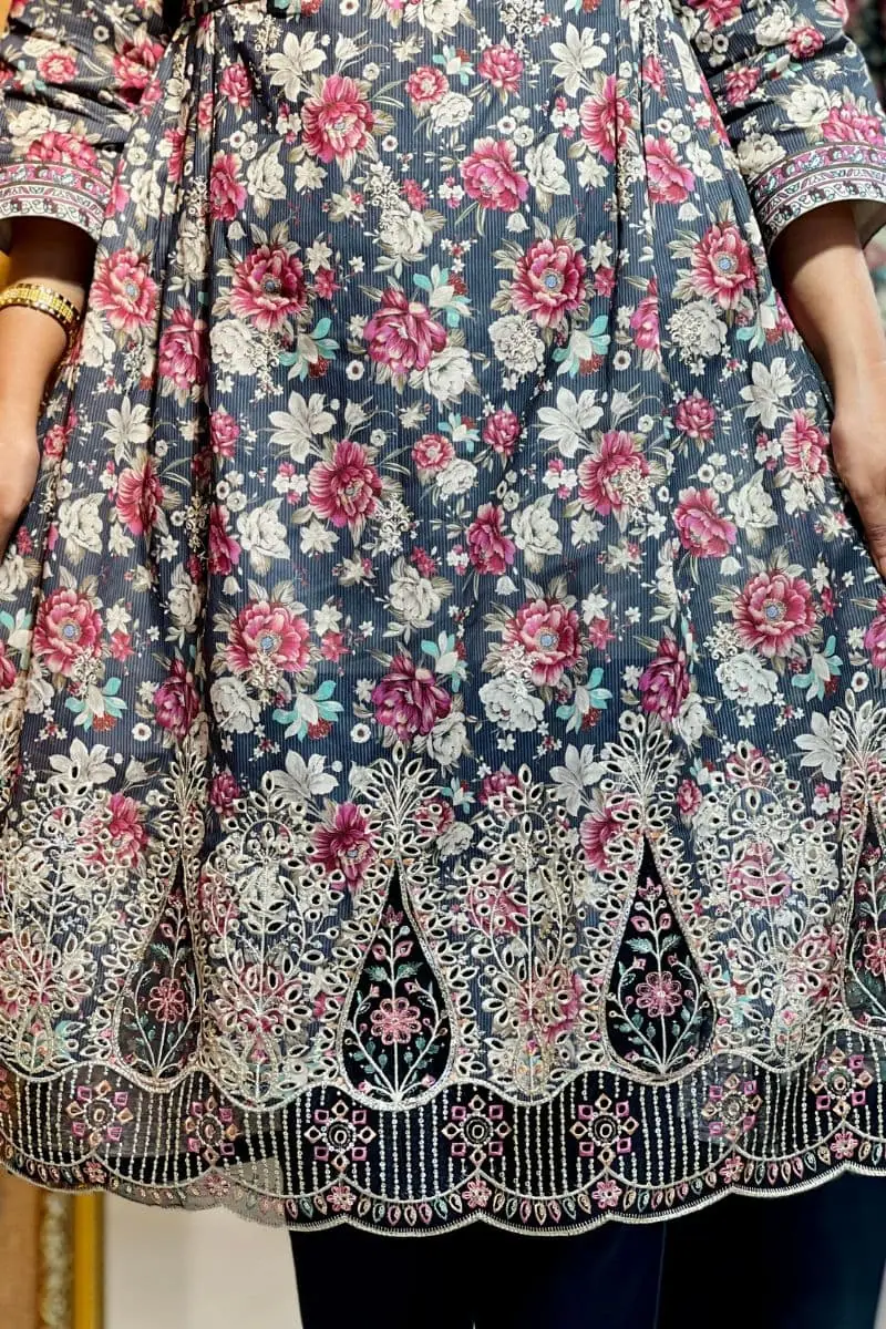 - Value Addition: Machine Embroidered with Sequence Work & Lace Work