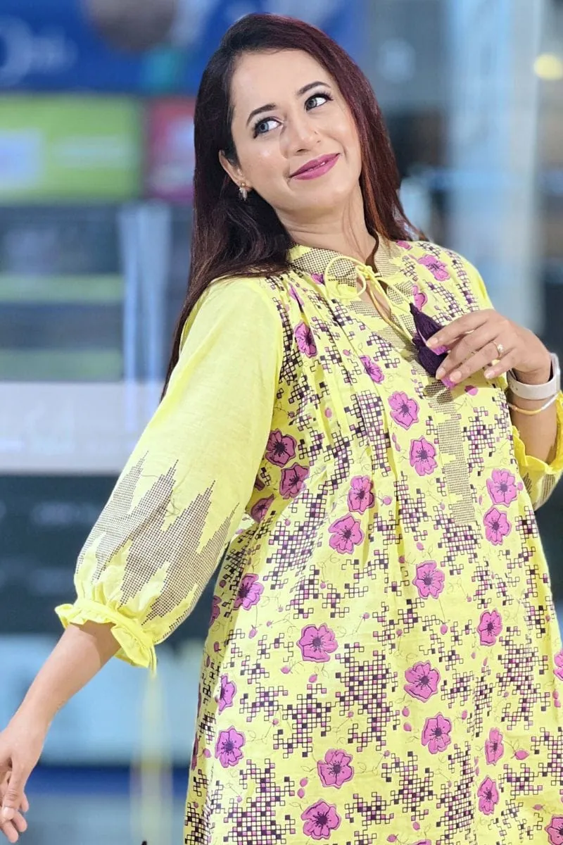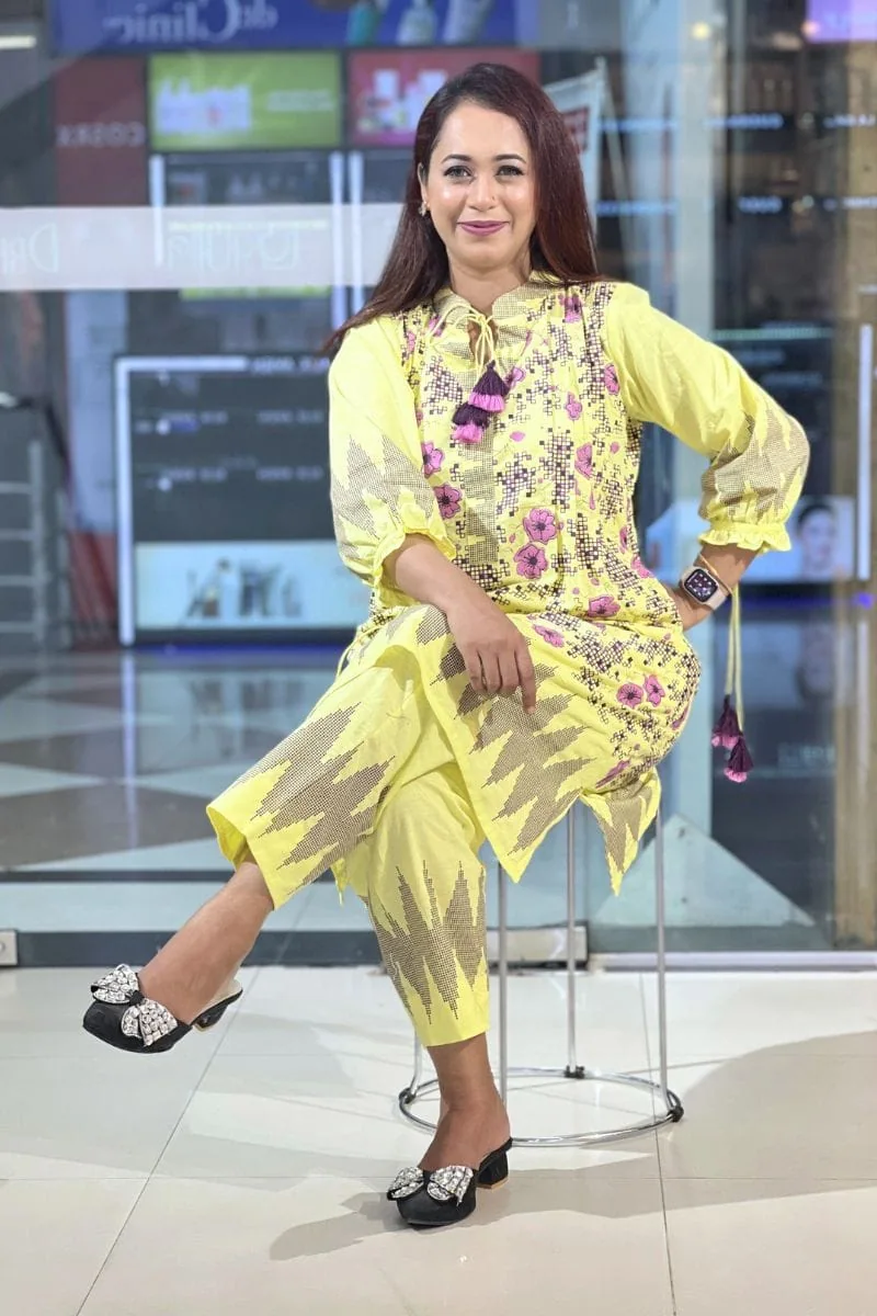 Brighten up your style with this Yellow Slub Cotton Screen Printed Co-Ords, designed with breathable fabric, modern cuts, and chic prints for effortless elegance.